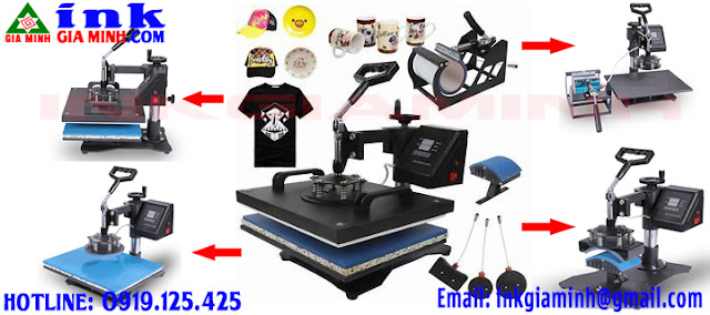 Máy ép nhiệt đa năng loại 5 trong 1. dòng máy ép chuyển nhiệt đa năng với năng chức năng ép nhiệt gồm ép chuyển nhiệt phẳng, ép chuyển nhiệt lên cốc, ép chuyển nhiệt lên nón, ép chuyển nhiệt lên dĩa. Máy ép nhiệt đa năng loại 5 trong 1 chuyên dụng trong công nghệ in chuyên nhiệt có thể thay đổi linh hoạt các chức năng trong ép nhiệt